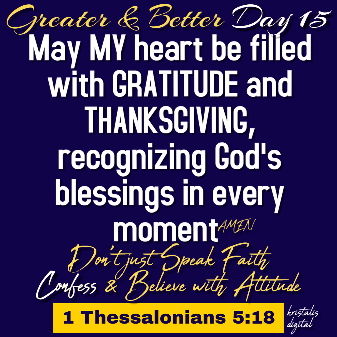 Heavenly Father, I lift the reader up to you today, thank You for the countless blessings You pour into their lives each day. Help them to have a heart of gratitude, even in difficult circumstances. Open their eyes to see Your goodness in every moment and remind them to give thanks in all things. Let their life be a reflection of Your faithfulness and may their gratitude bring glory to Your name. In Jesus Name, Amen.